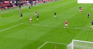 48' 耶茨右路传中,吉布斯-怀特头球破门,诺丁汉森林扳平比分。